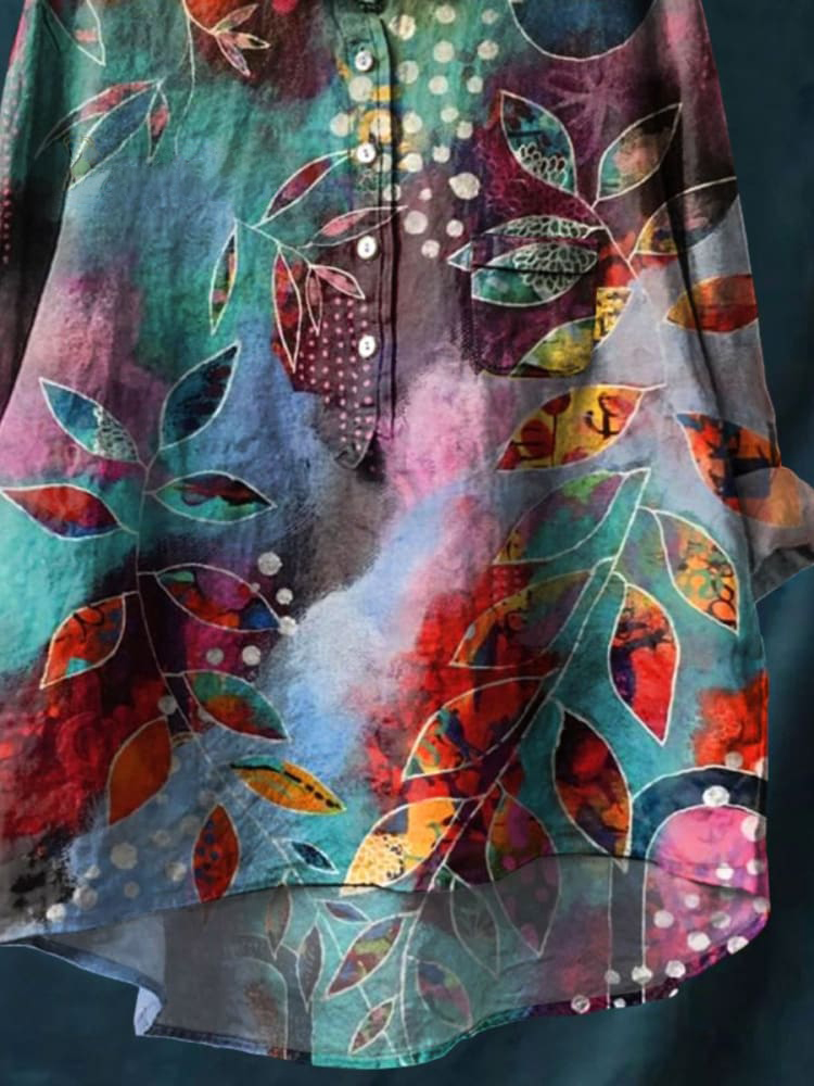Abstrct leaves Art Print Casual Cotton And Linen Shirt