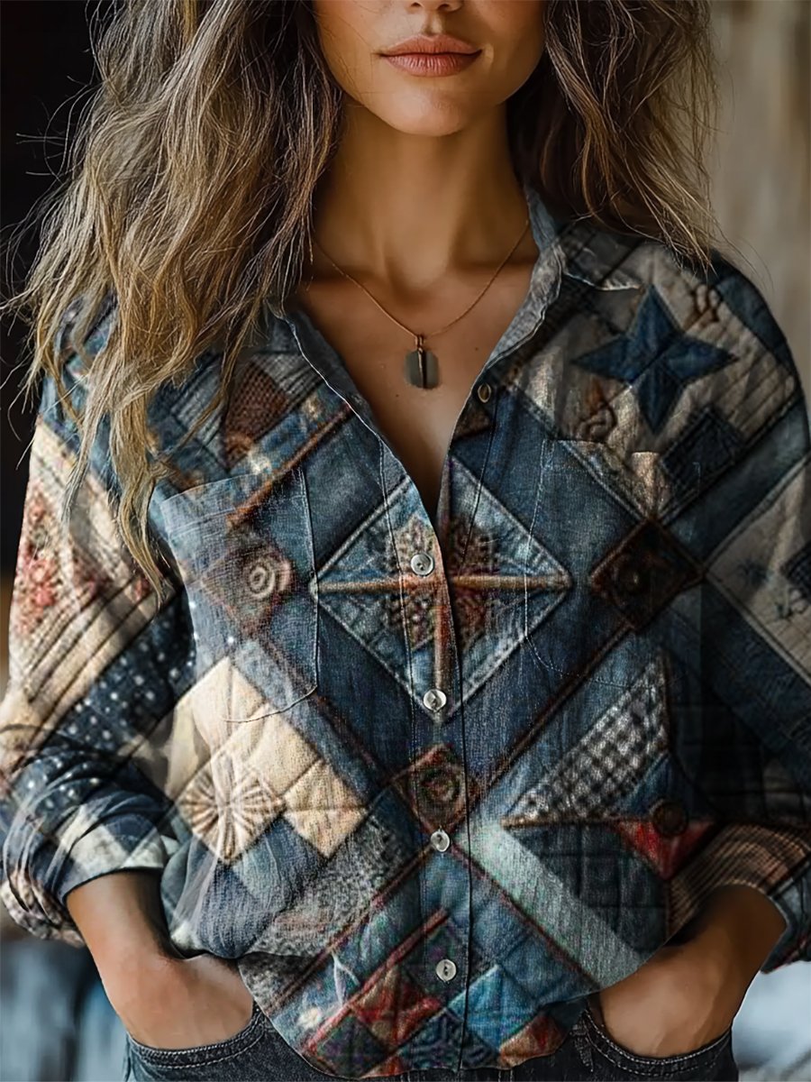 Art Print Casual Long Sleeve Comfortable Cotton Shirt