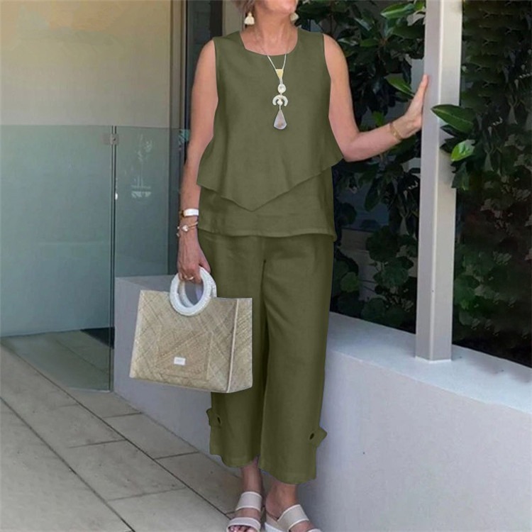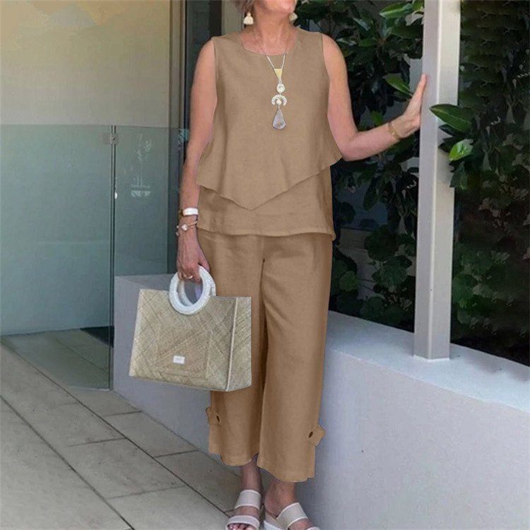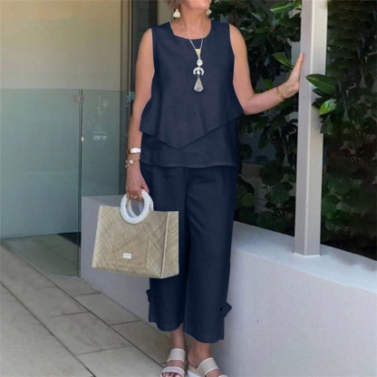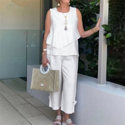 Asymmetric sleeveless cotton and linen vest set
