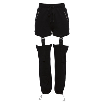 Bandage Design Loose High Waist Solid Color Fake Zip Cargo Pants