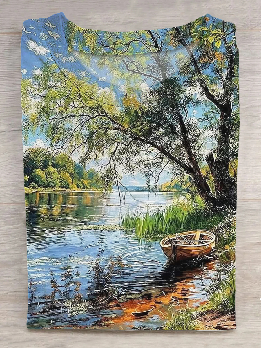 Beautiful Scenery Printed Vintage Fashion Loose Short Sleeve T-Shirt