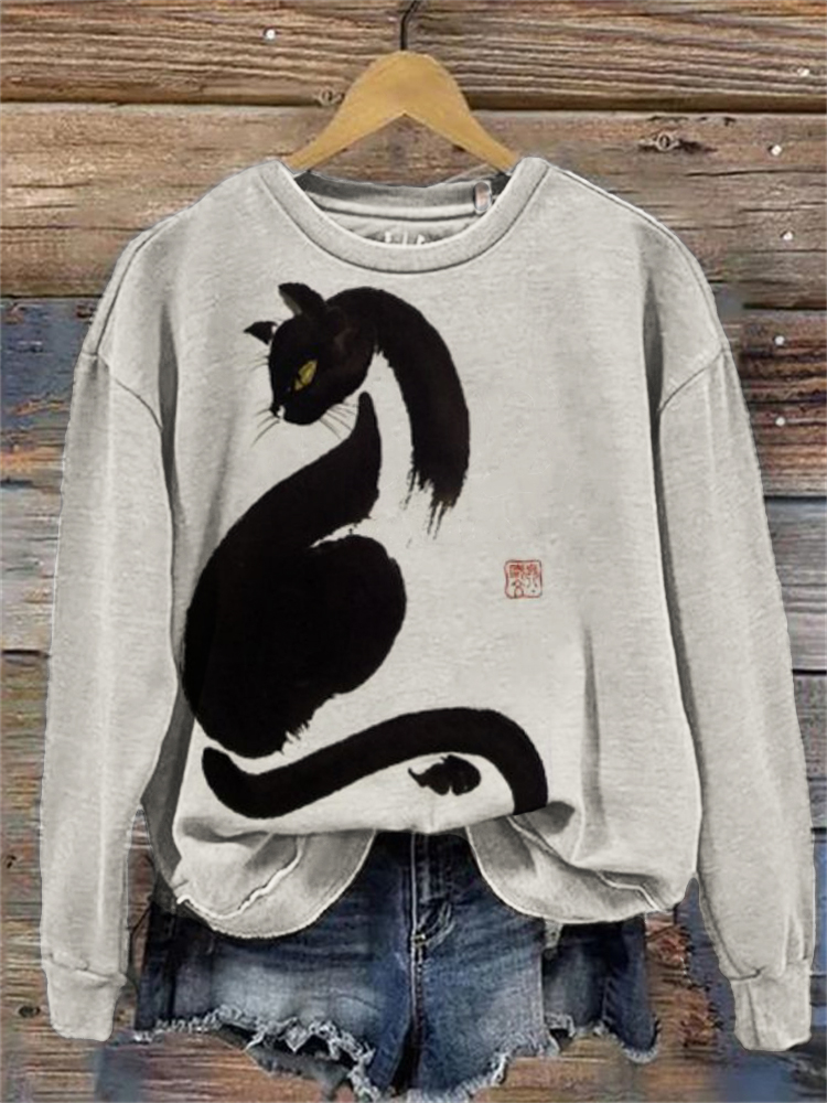 Black Cat Asian Brush Art Comfy Sweatshirt