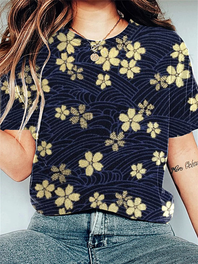Cherry Blossom Japanese Art Print Vintage T-Shirt