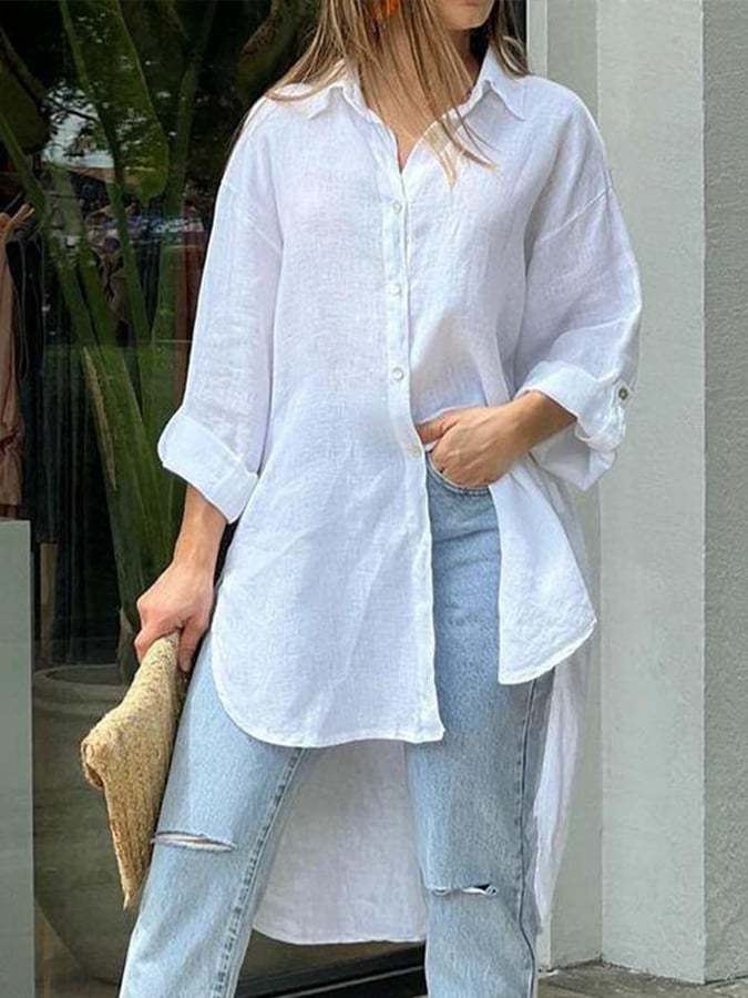 Cotton Linen Loose Comfortable Irregular Hem Shirt