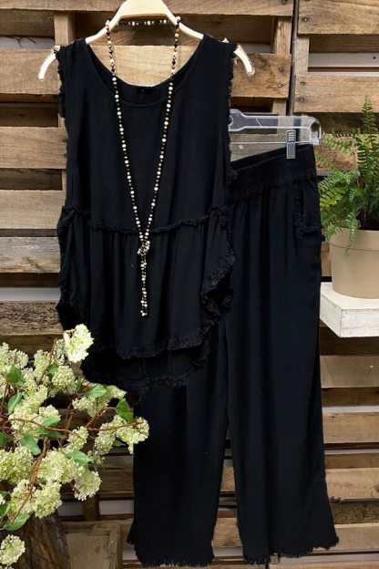 Sleeveless O-neck Vest Wide Leg Pants Suit