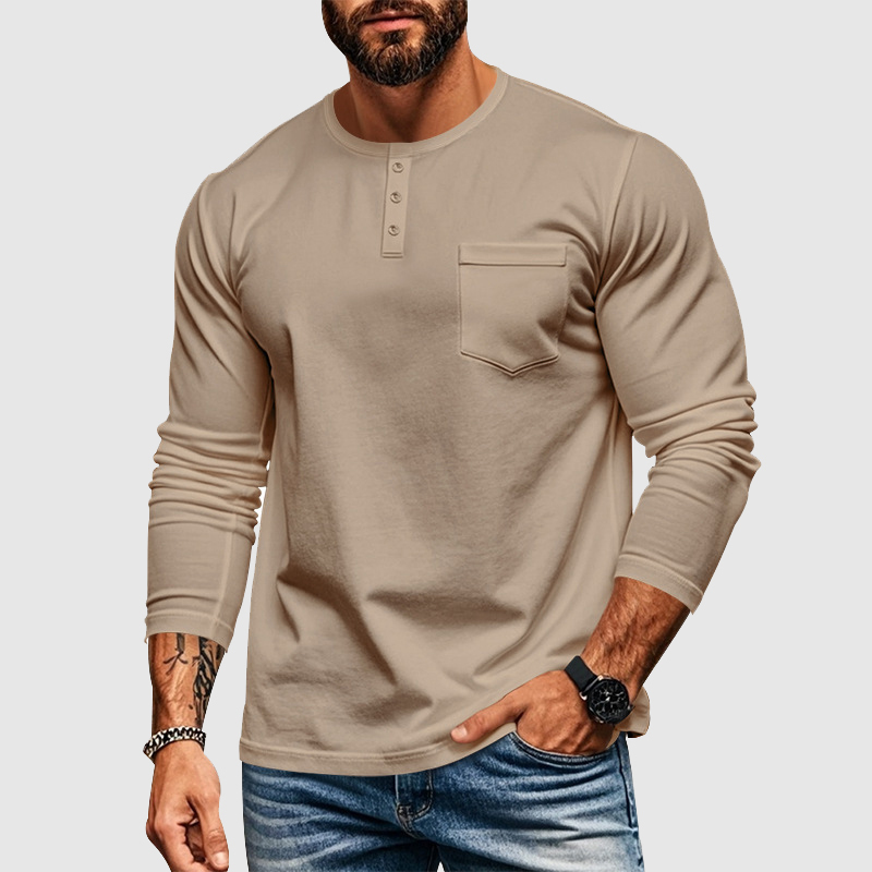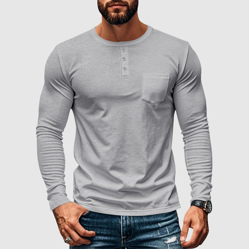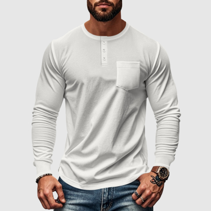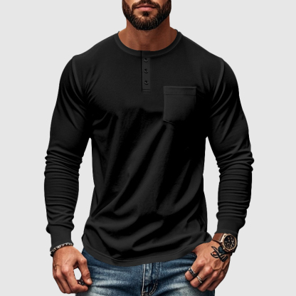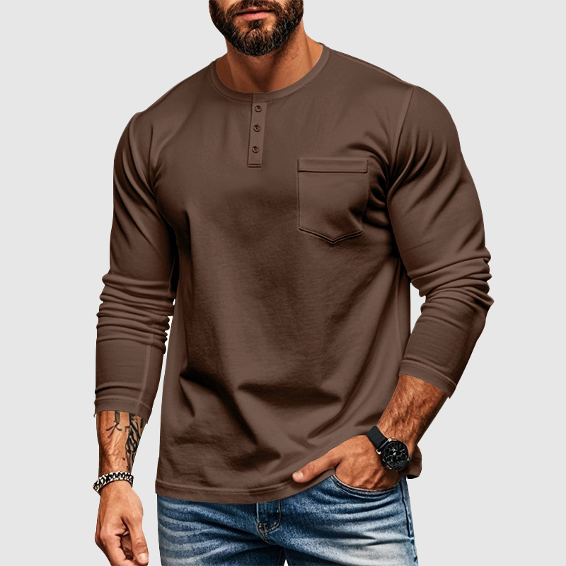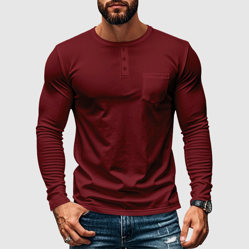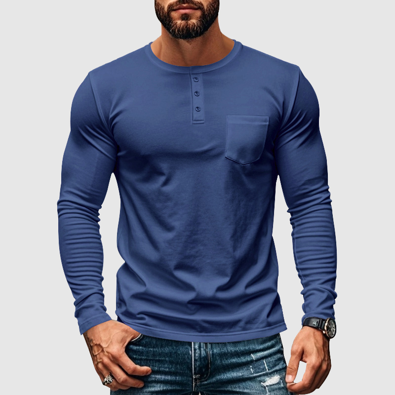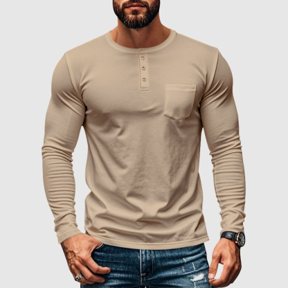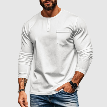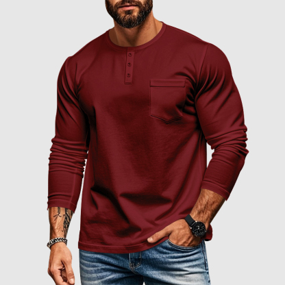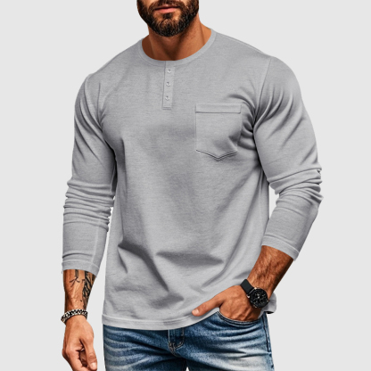 Daily Button Up Pocket Round Neck Long Sleeve Slim Fit T-Shirt