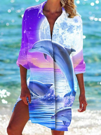 Dolphin Print Women'S Shirt