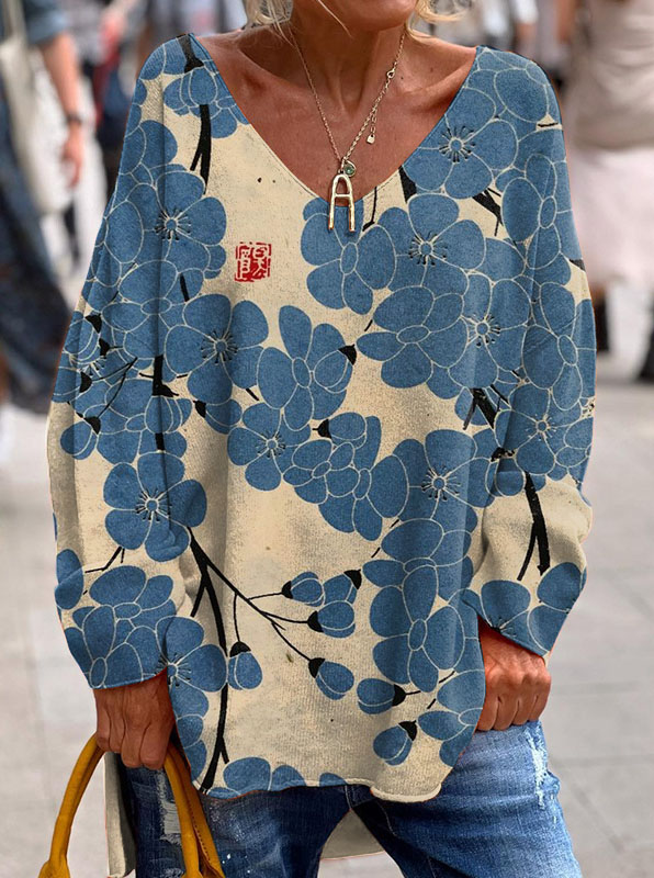 Elegant Plum Blossom Japanese Art Long Sleeve Top