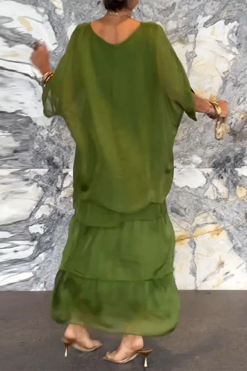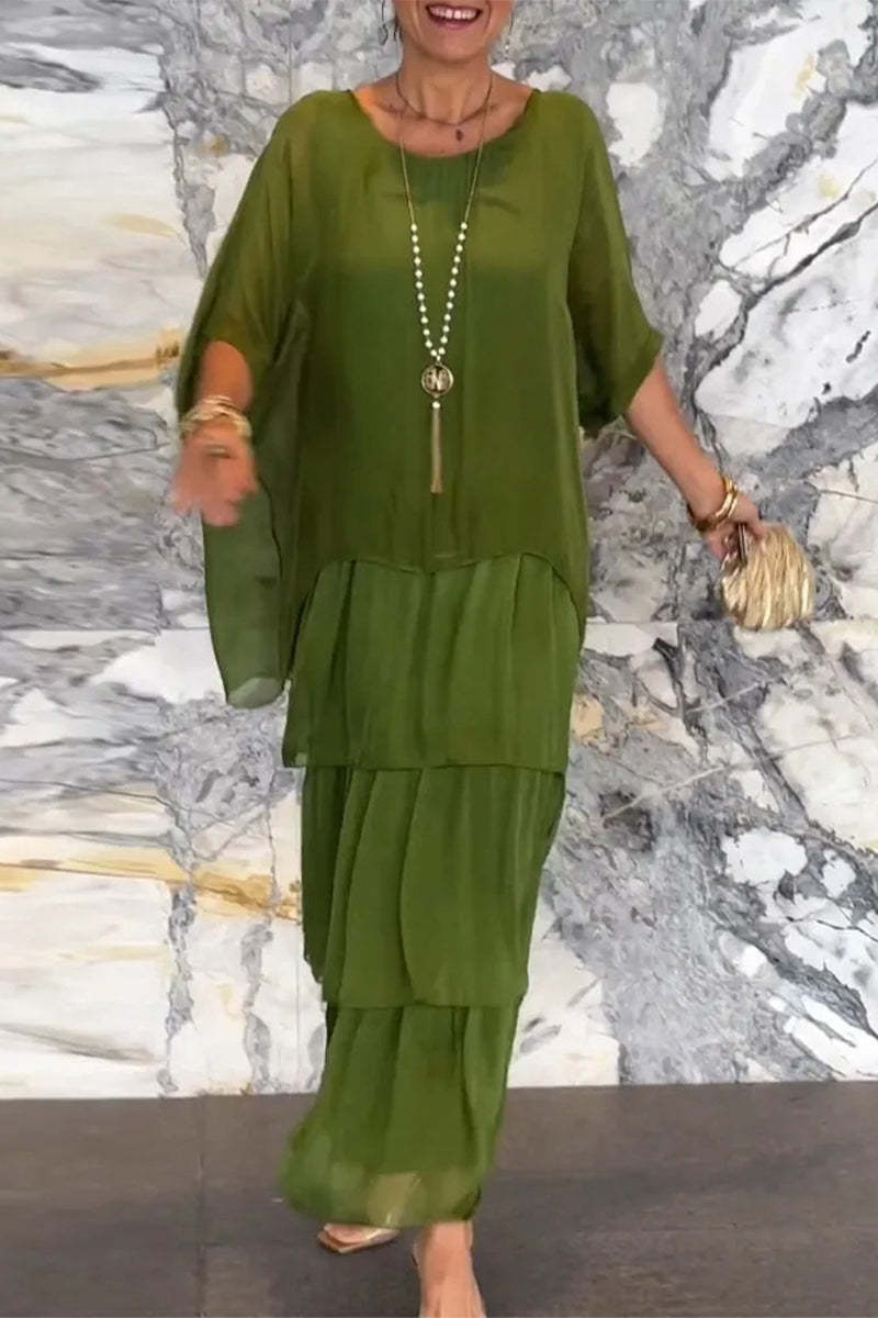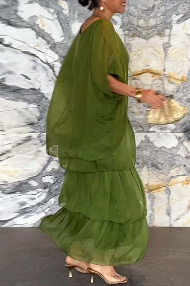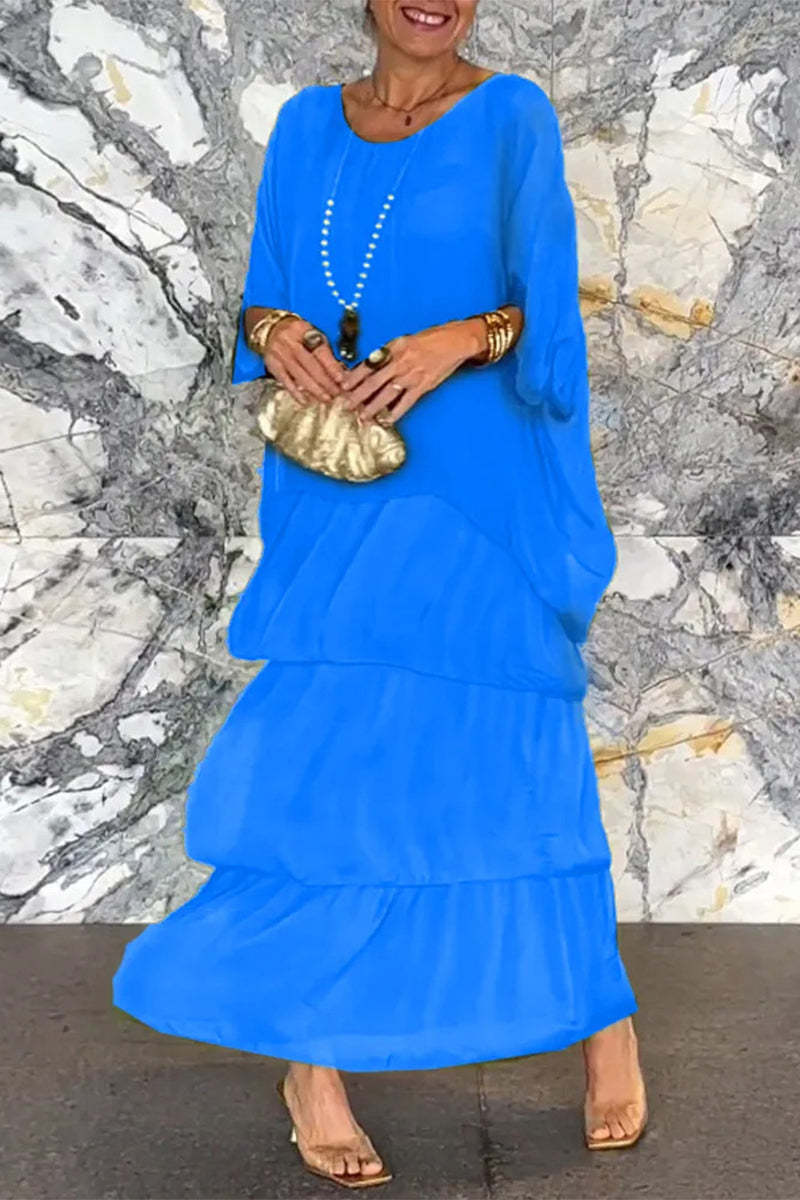 Elegant Solid Flounce O Neck A Line Dresses
