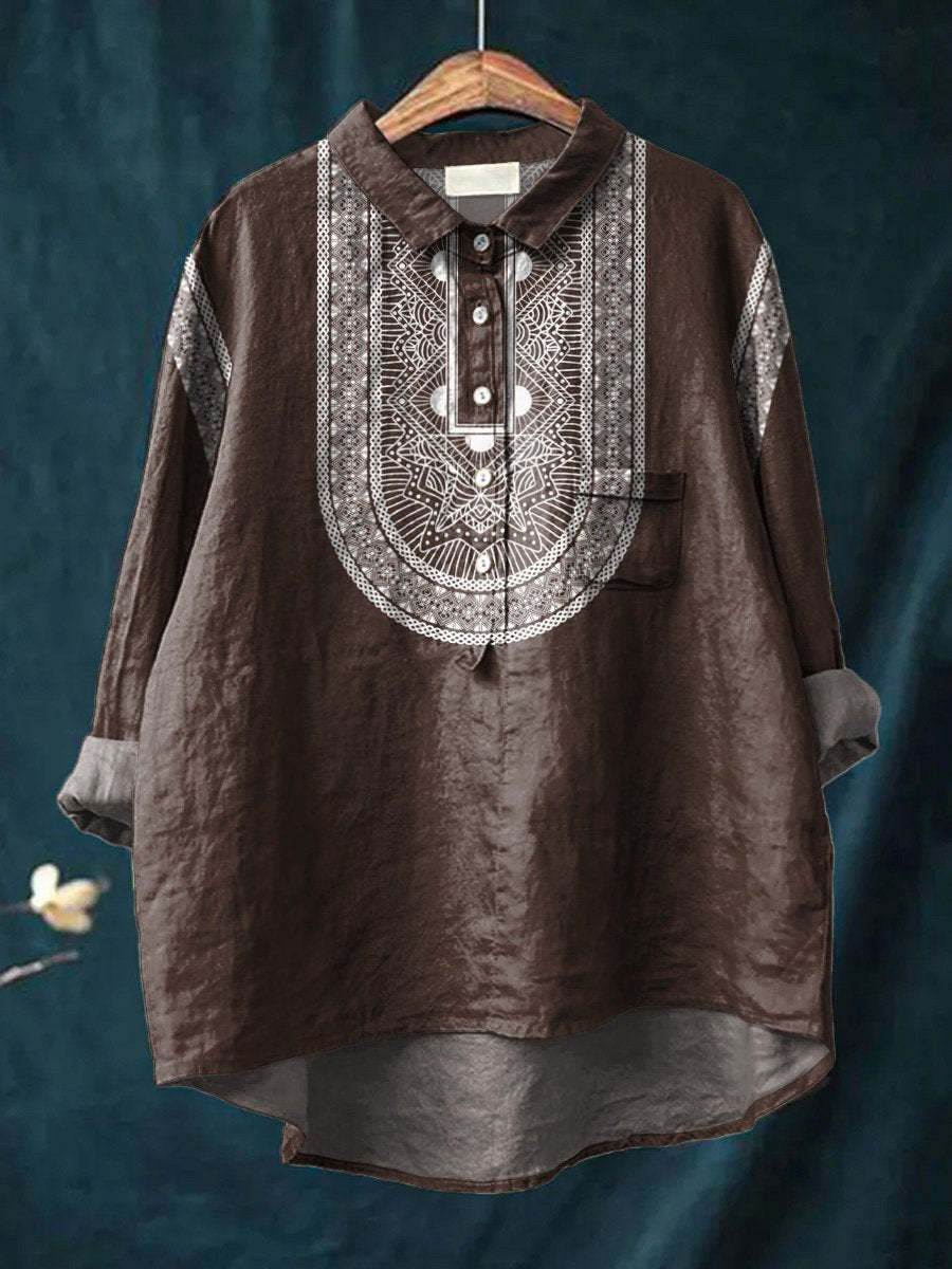 Ethnic Style Geometric Pattern Printed Women's Casual Cotton And Linen Shirt