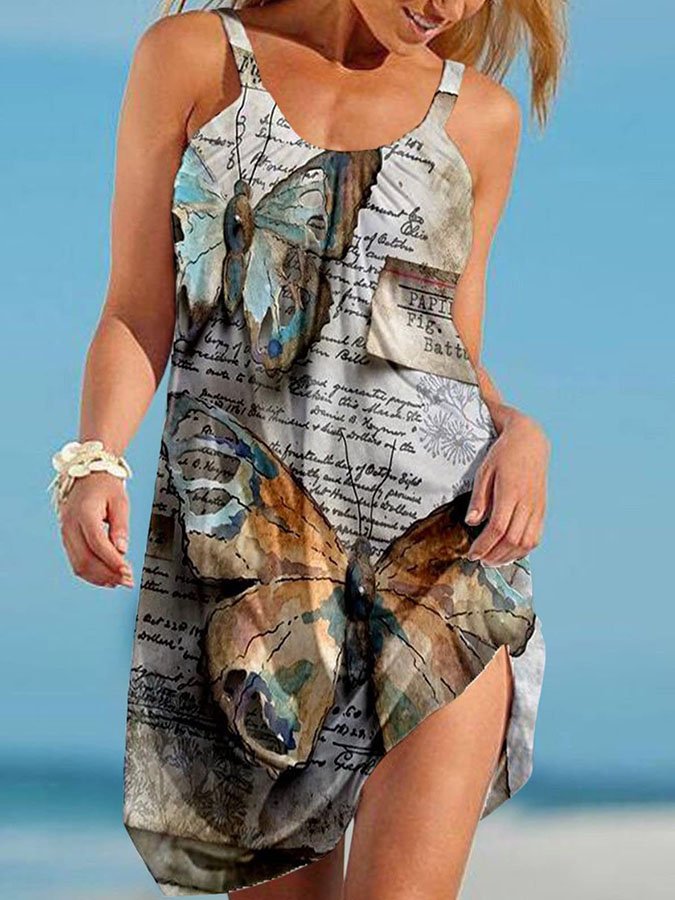 Fashion Crew Neck Sleeveless Print Dress