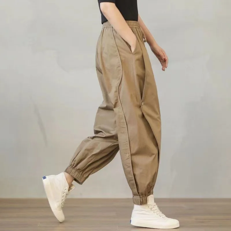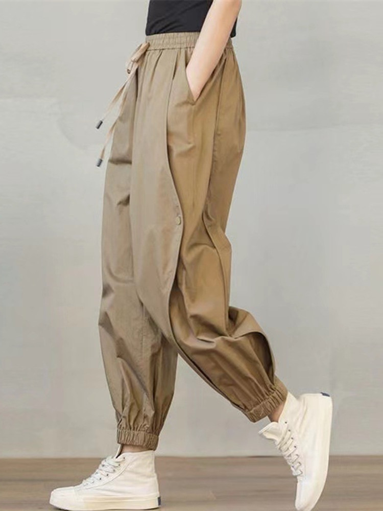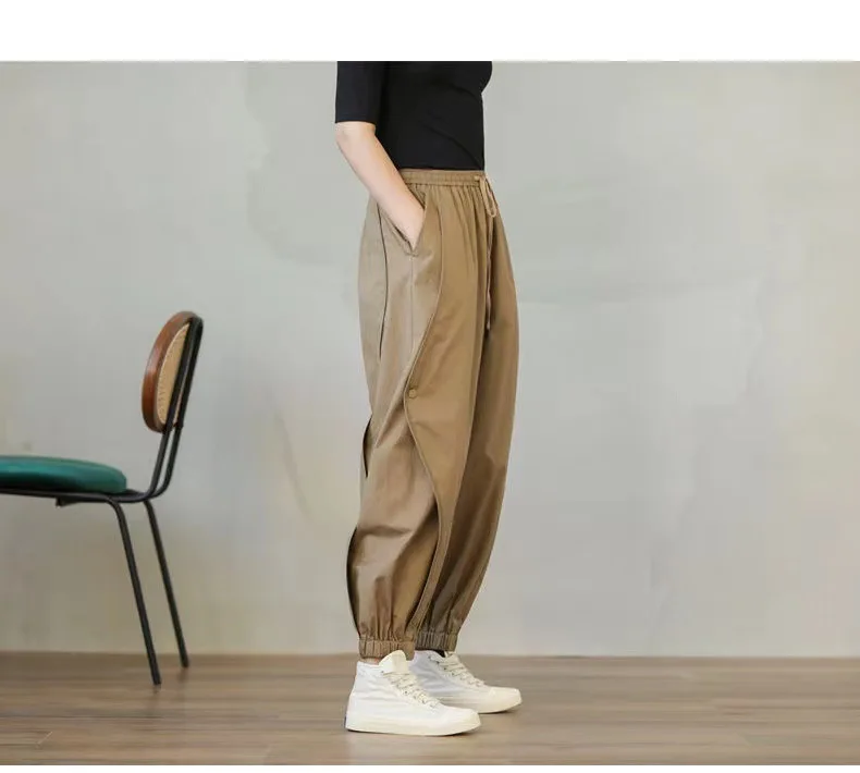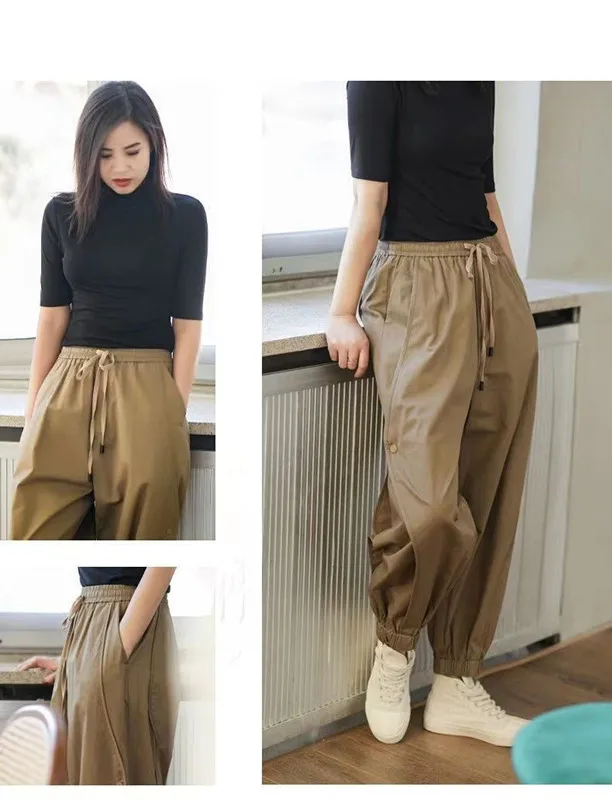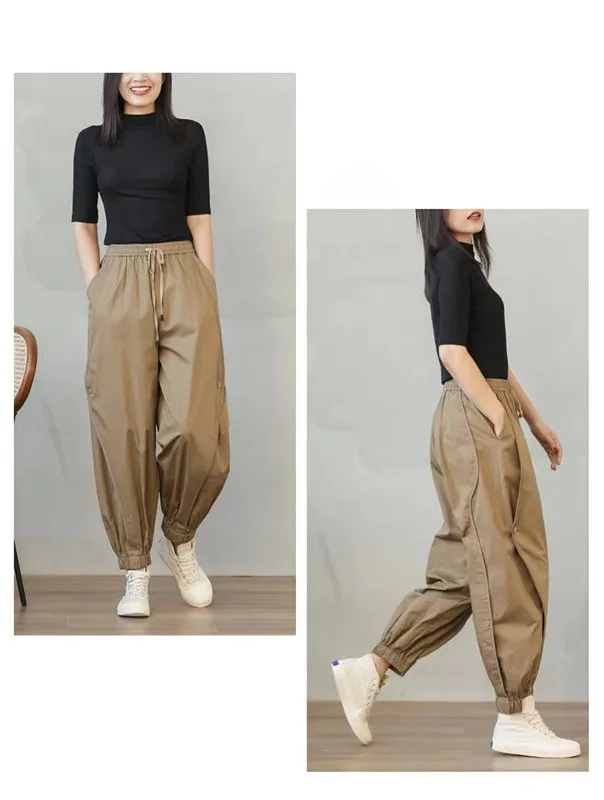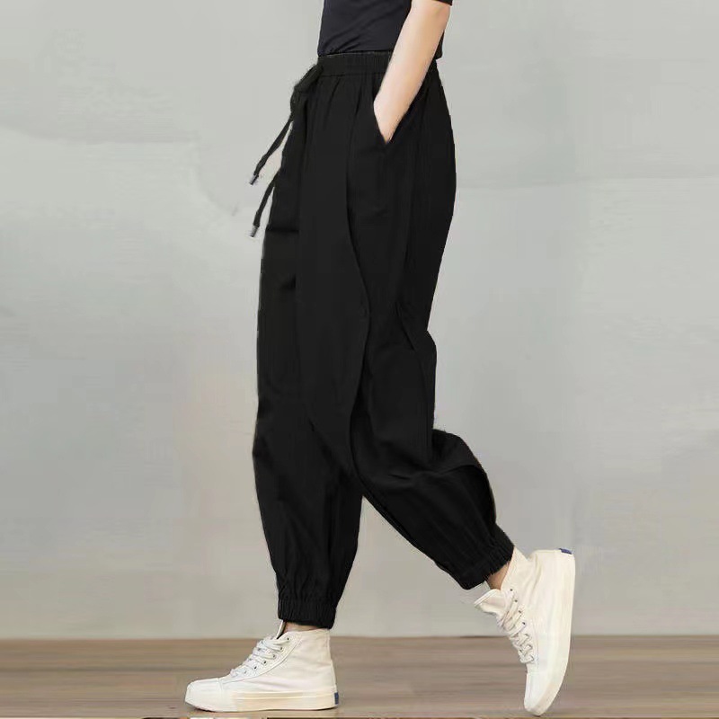 Fashion Solid Women Harem Pants Elegant Drawstring Elastic Waist Black Casual Work Wear Loose Trousers