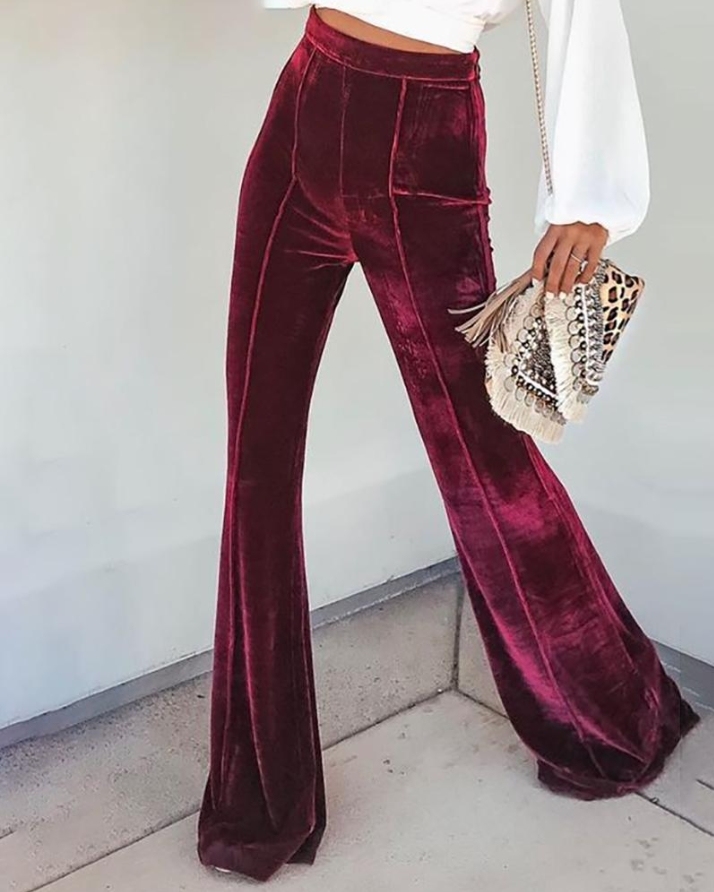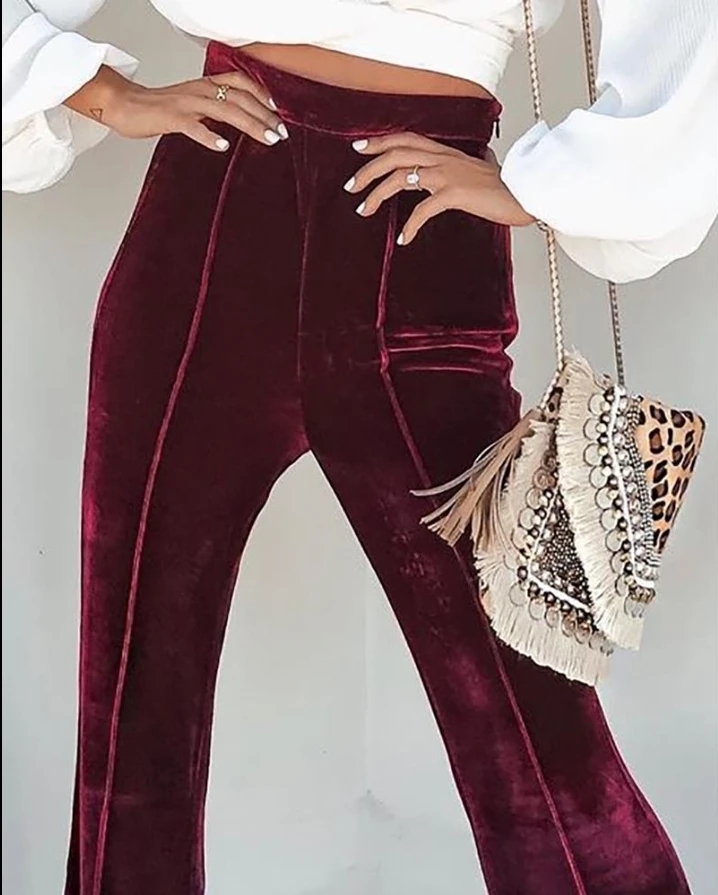 Fashion Velvet High Waist Casual Flared Pants