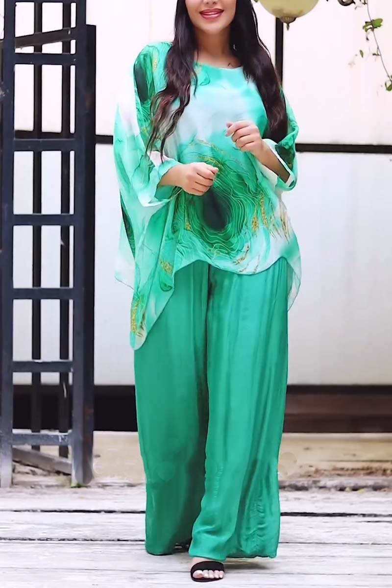 Fashionable chiffon printed loose two-piece set