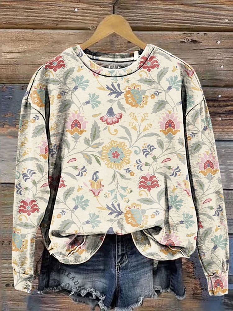 Floral Art Print Casual Sweatshirt