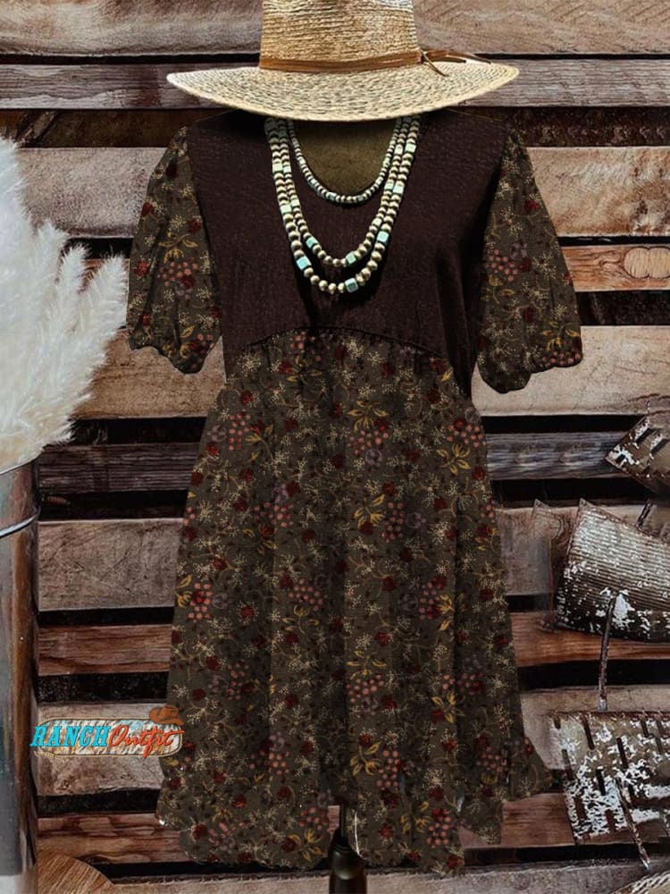 Floral Pattern Women's Print Pocket Cotton Dress