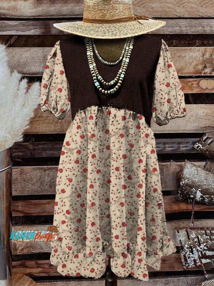 Floral Pattern Women's Print Pocket Cotton Dress