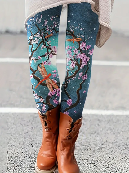 Flower And Dragonfly Pattern Casual Leggings
