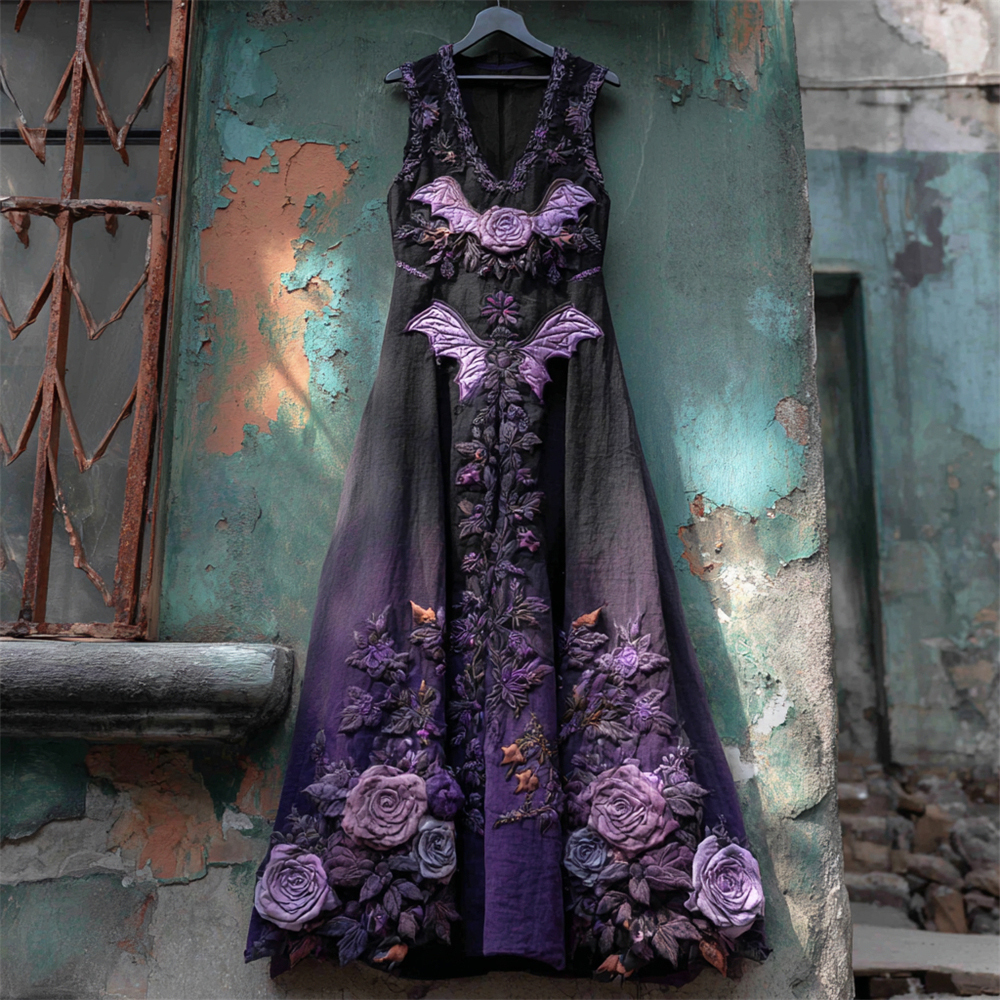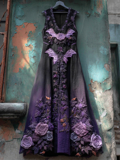 Halloween Bat & Dark Rose Women's Vest Midi Dress