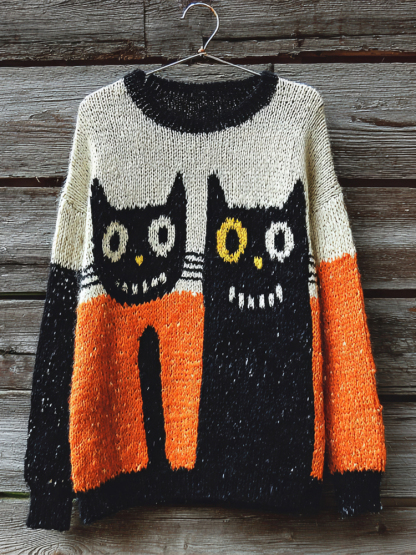 Halloween Black Cat Clashing Art Women's Knitted Sweater