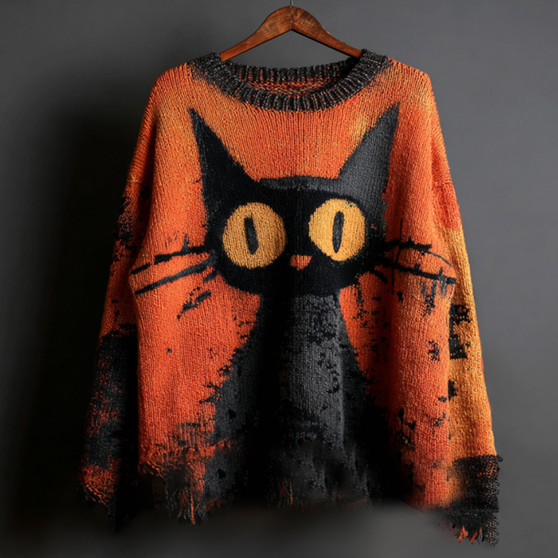 Halloween Black Cat Knit Sweatshirt