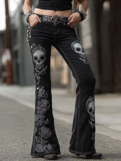 Halloween Gothic Dark Skeleton Series Women's Tight Jeans Bell-bottom Pants