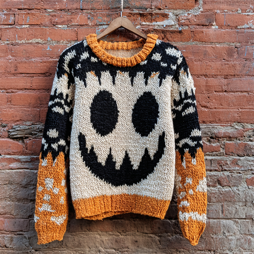 Halloween Pumpkin Evil Emoji Women's Icelandic Sweater