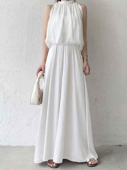 High Waisted Loose Elasticity Pleated Solid Color Culotte Pants