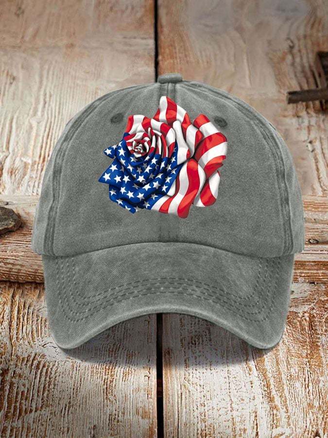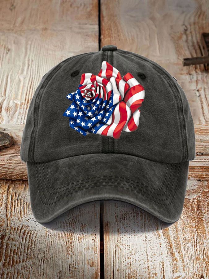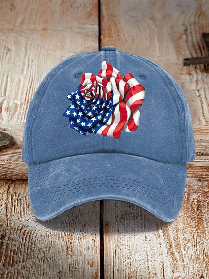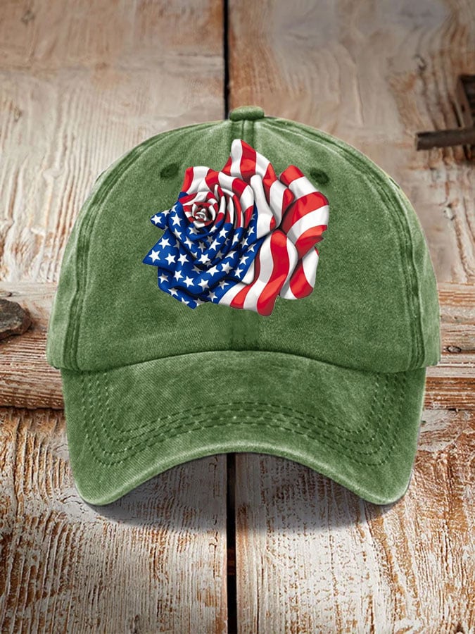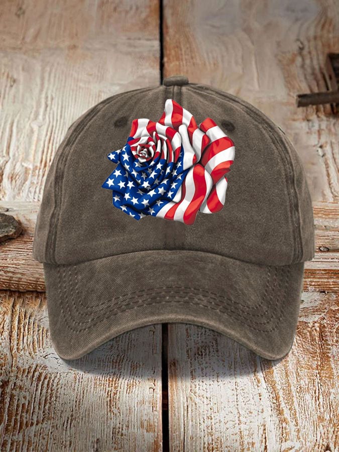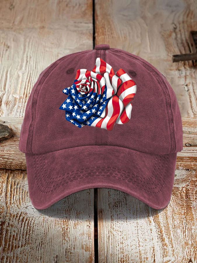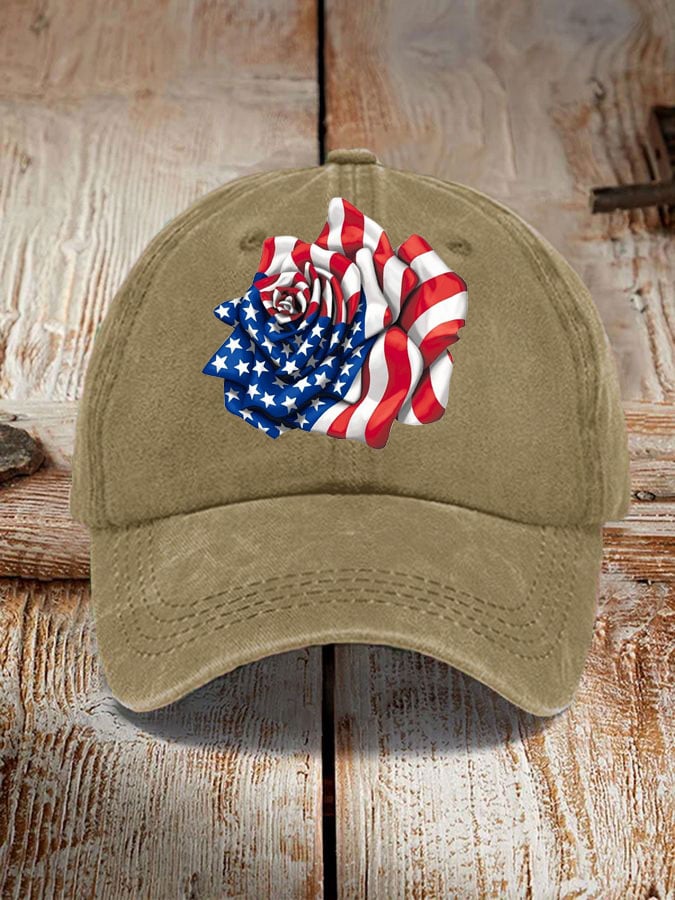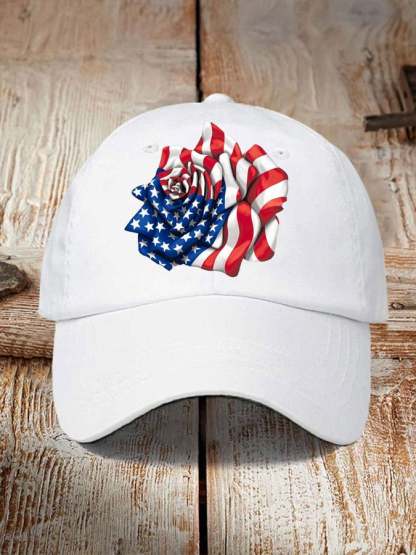 Independence Day Flag Rose Print Sun Hat