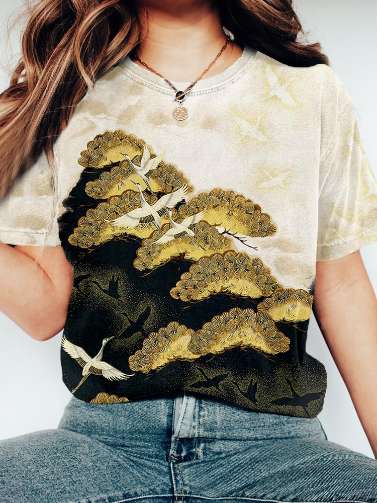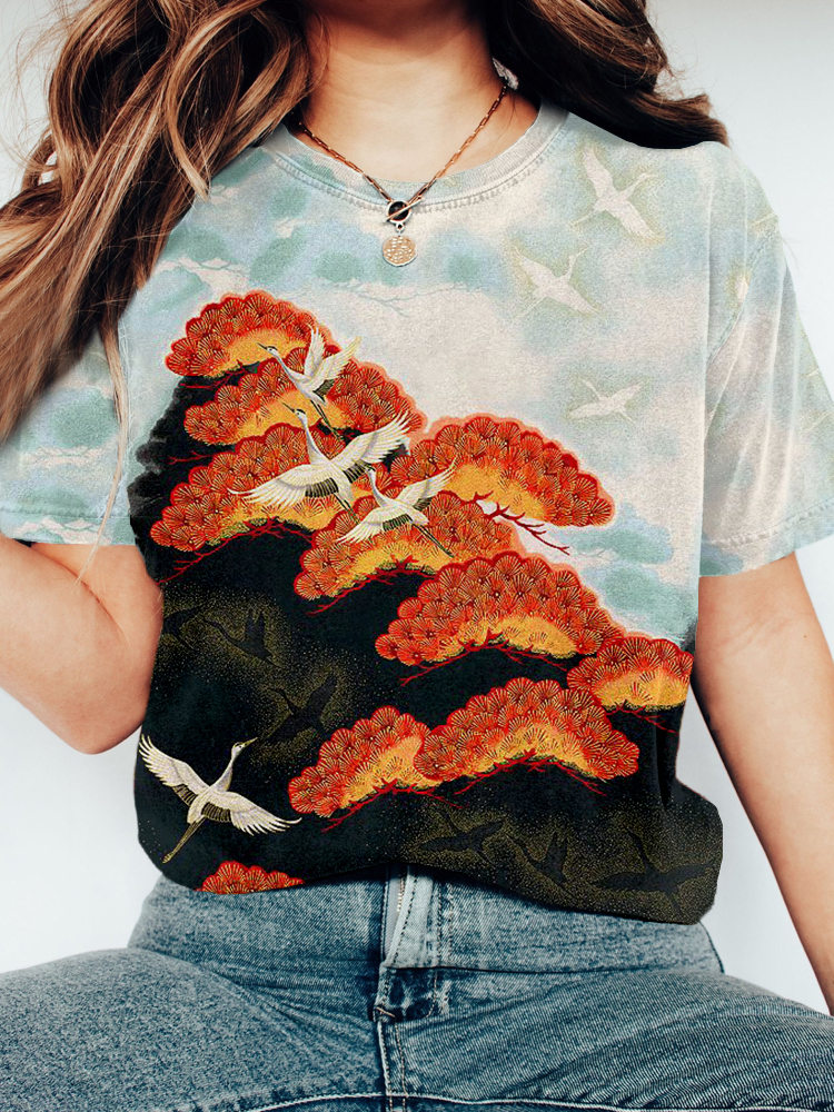 Japanese Cranes & Pine Trees Art Vintage T Shirt