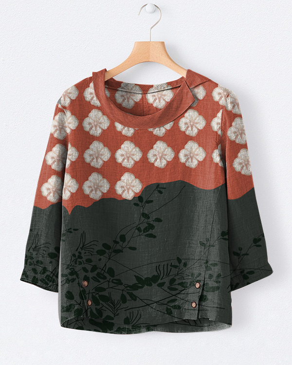 Japanese Floral Art Print Casual Lapel Top