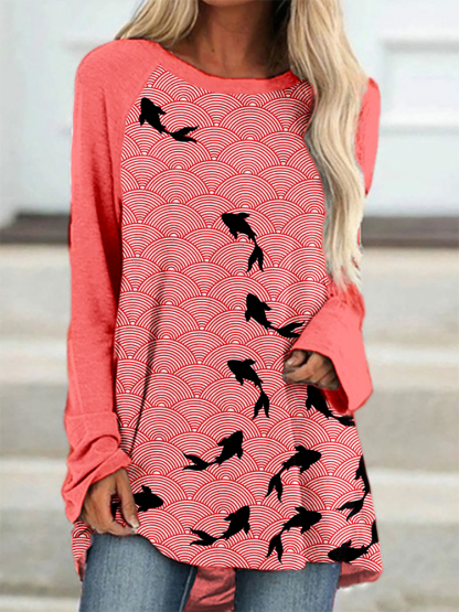 Japanese Gold Fish Art Contrast A Line T Shirt