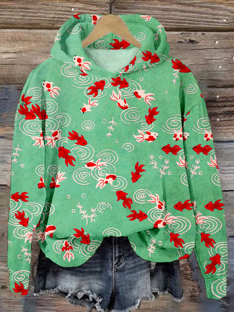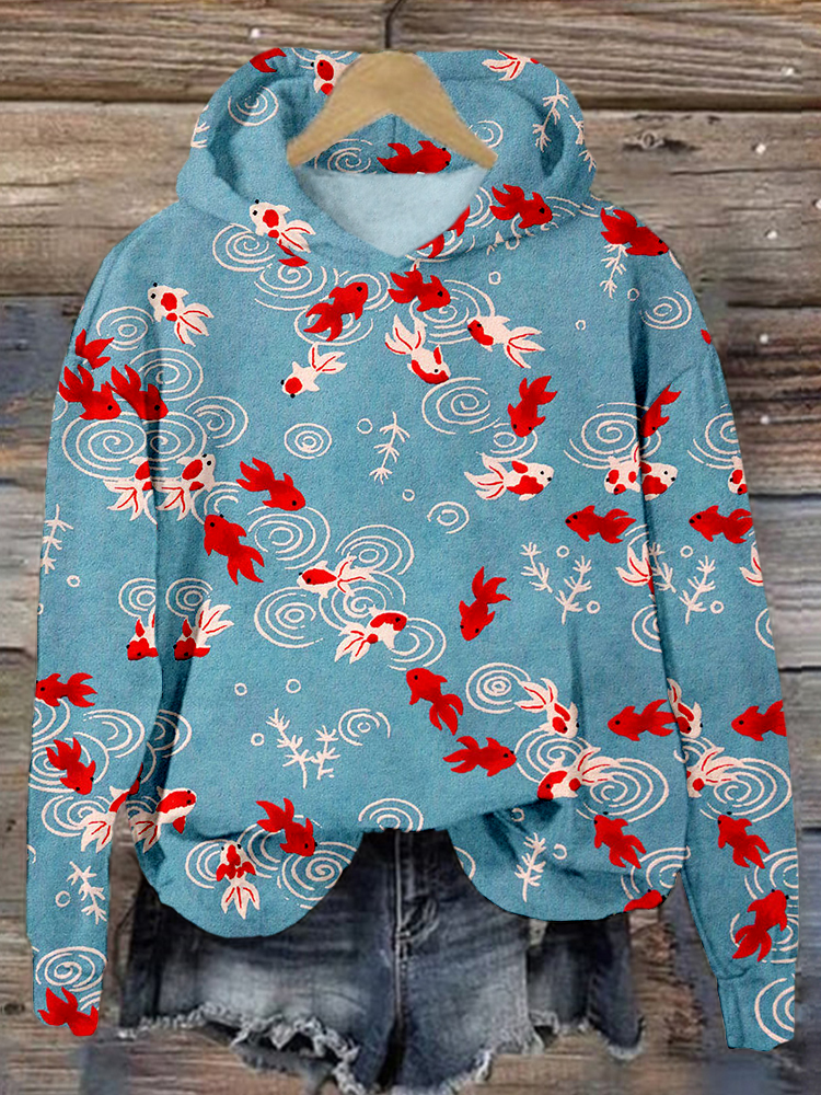 Japanese Gold Fish Art Graphic Comfy Hoodie