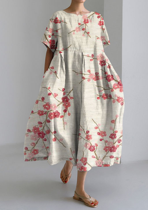 Japanese Plum Blossom Art Retro Short-sleeved Loose Midi Dress