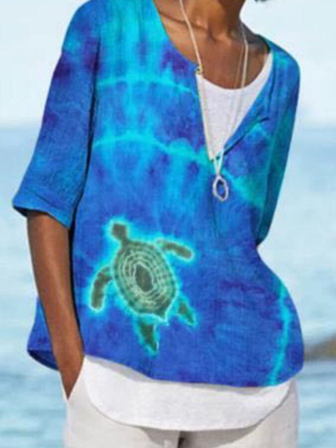 Ladies Spring/Summer V-Neck Short Sleeve Pullover Shirt
