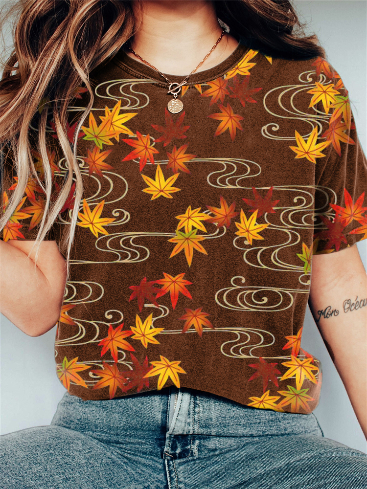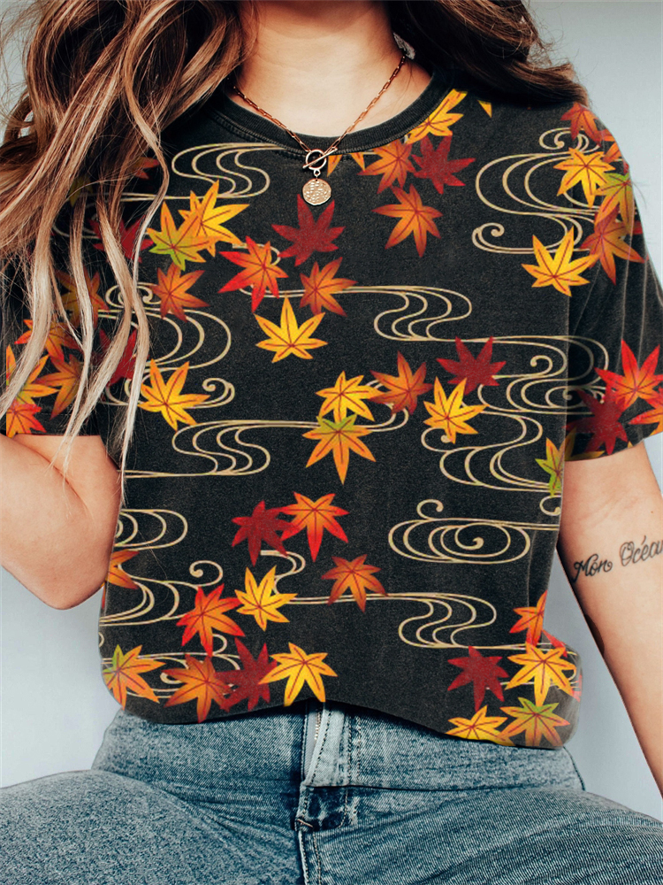 Maple Leaves Japanese Traditional Pattern Vintage T Shirt