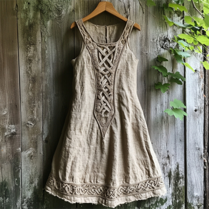 Medieval Viking Celtic Knot Patchwork Linen Tank Dress