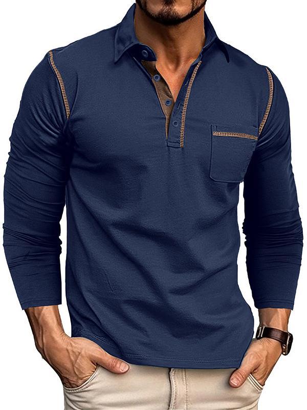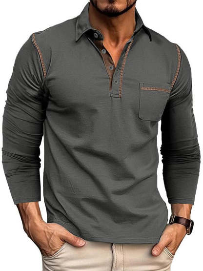 Men's Casual Cotton Lapel Pocket Long Sleeve Polo Shirt
