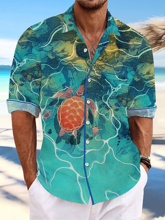Men's Casual Hawaiian Turtle Print Lapel Shirt