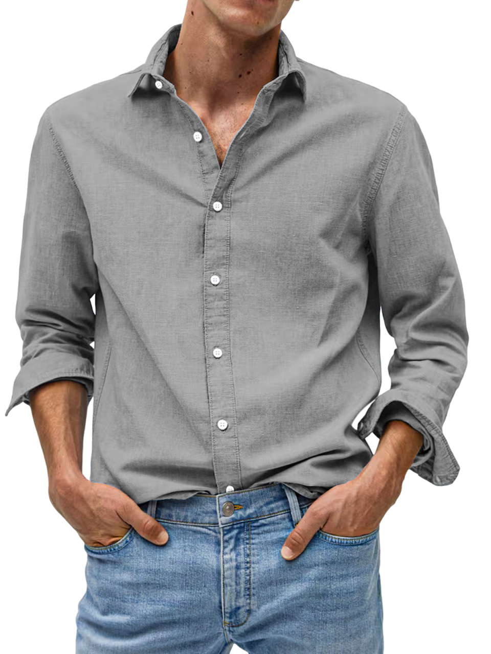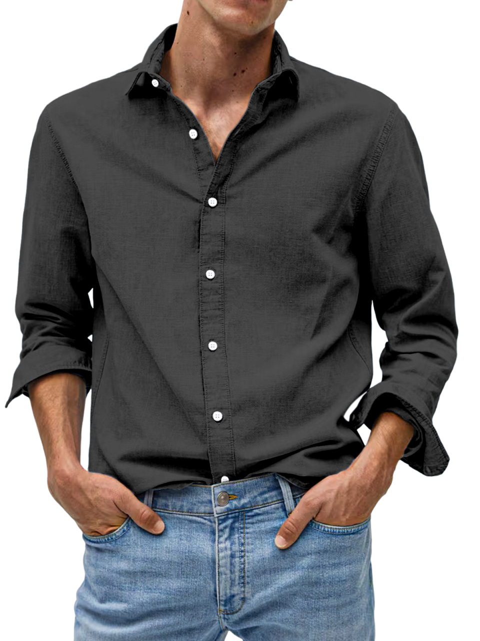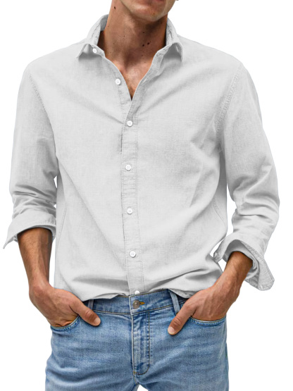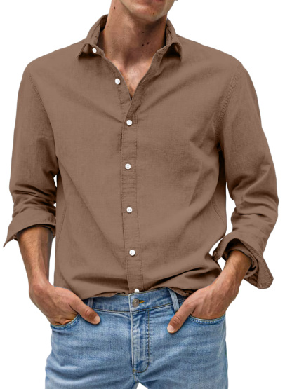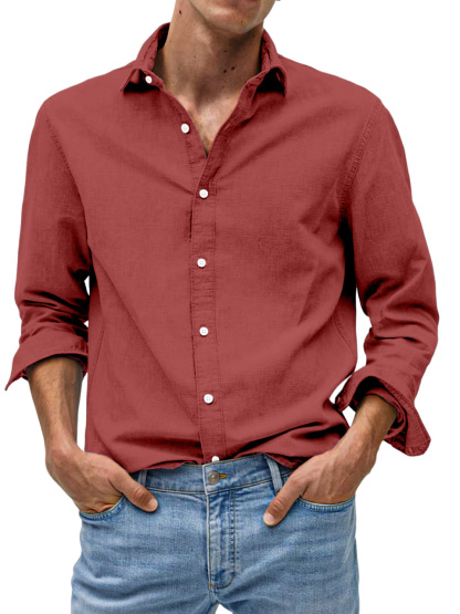 Men's Casual Solid Color Comfortable Loose Lapel Long Sleeve Shirt