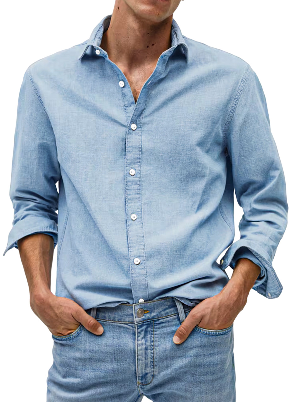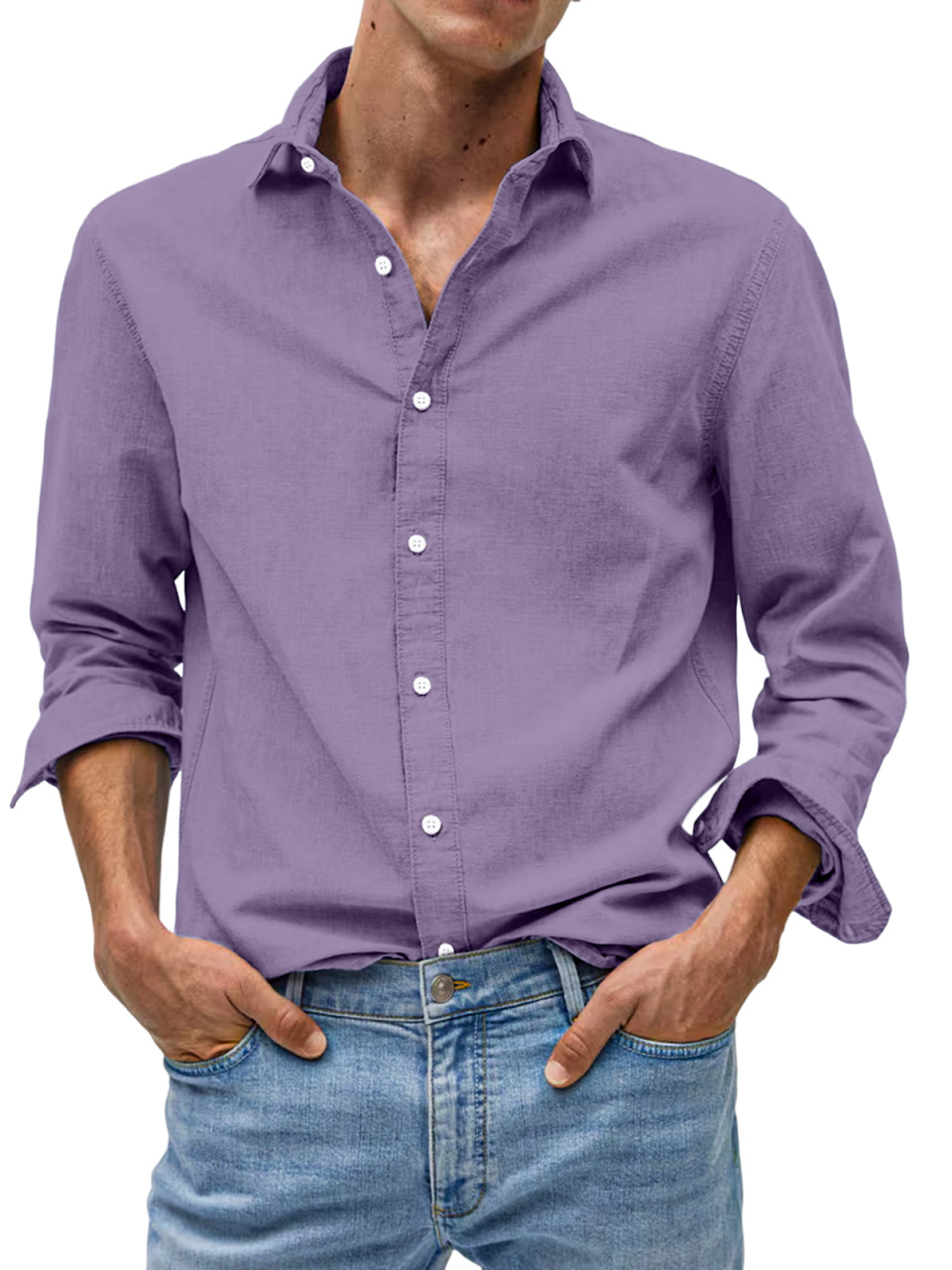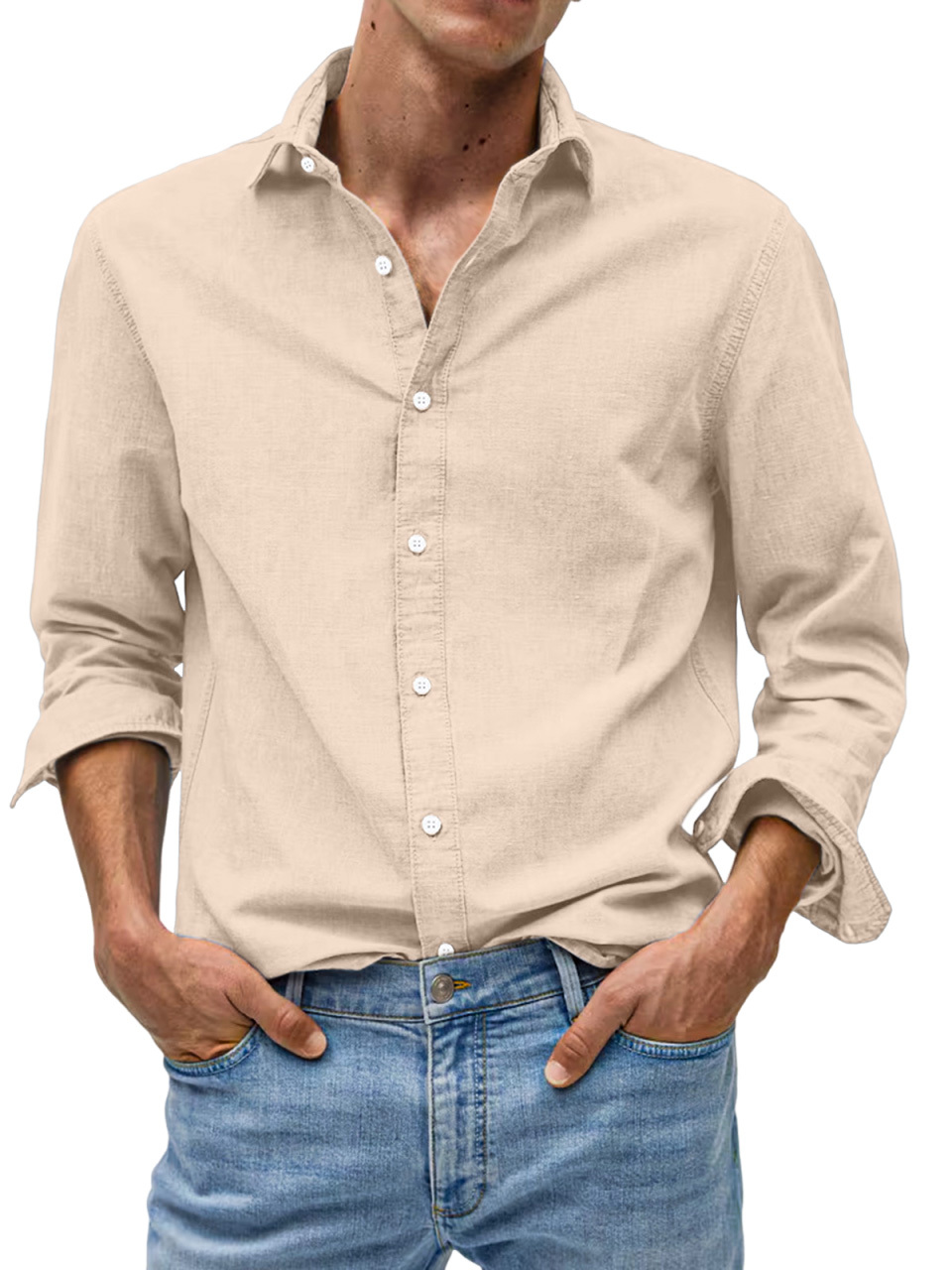 Men's Casual Solid Color Comfortable Loose Lapel Long Sleeve Shirt