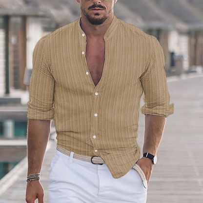 Men's Cotton and Linen Striped Casual Loose Short-sleeved Shirt