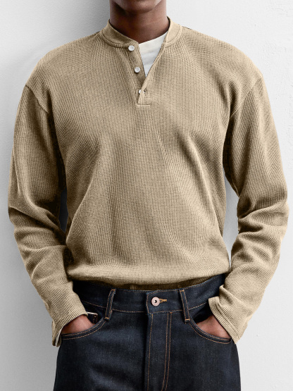Men's Everyday Casual Waffle Button Down Long Sleeve Henley