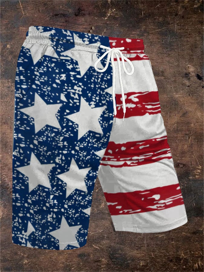 Men's Independence Day Flag Stripes Print Casual Shorts