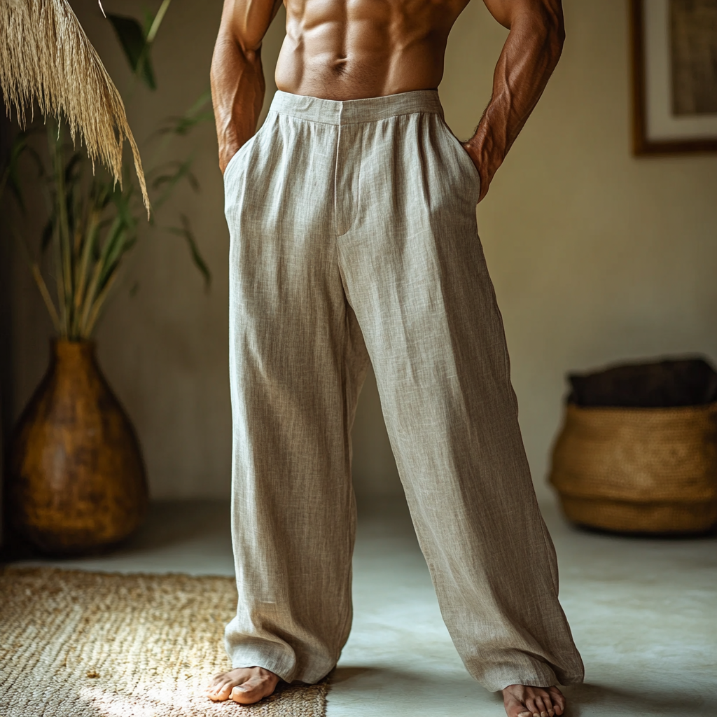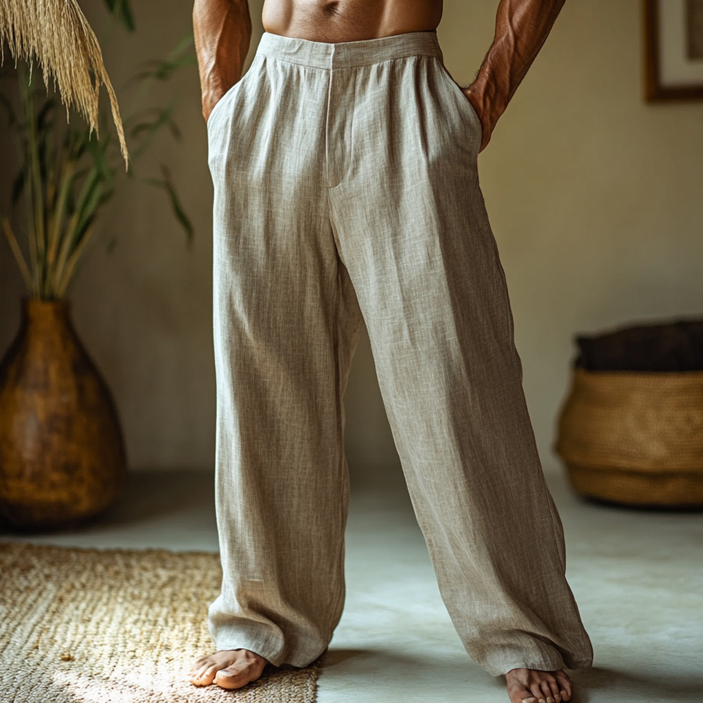 Men's Linen Straight Wide Leg Casual Pants