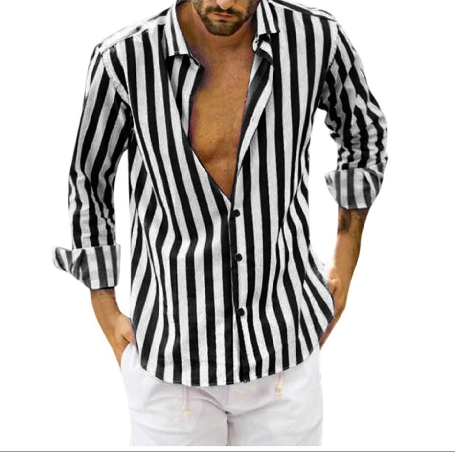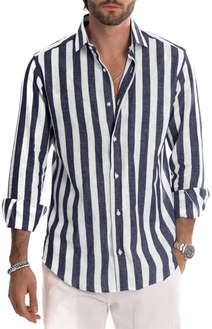 Men's Long Sleeve Lapel Striped Shirt