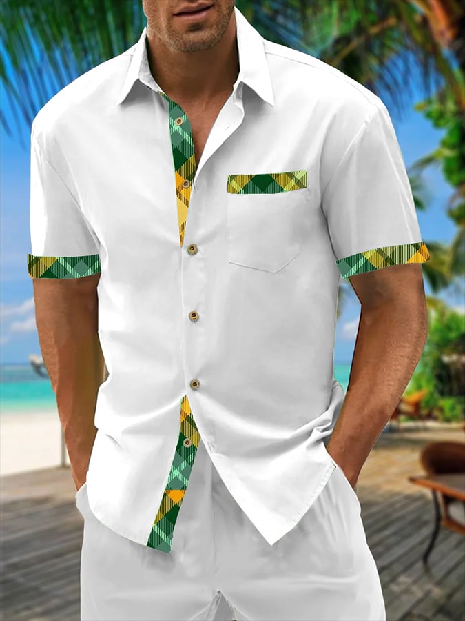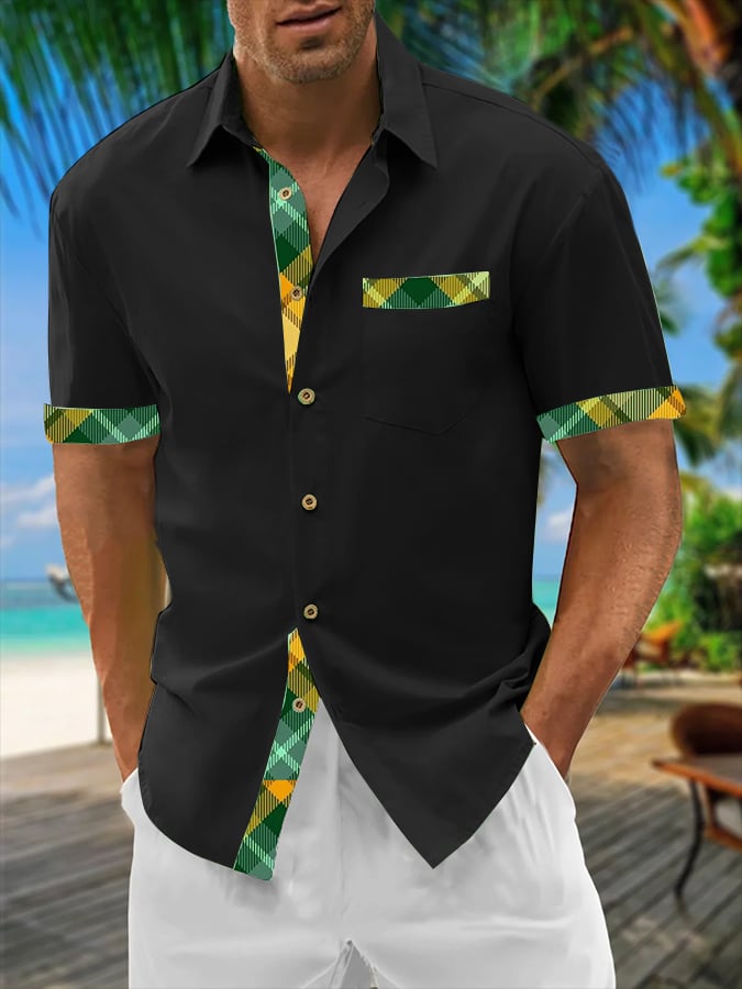 Men's Resort Style Contrast Print Casual Short Sleeve Shirt