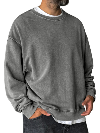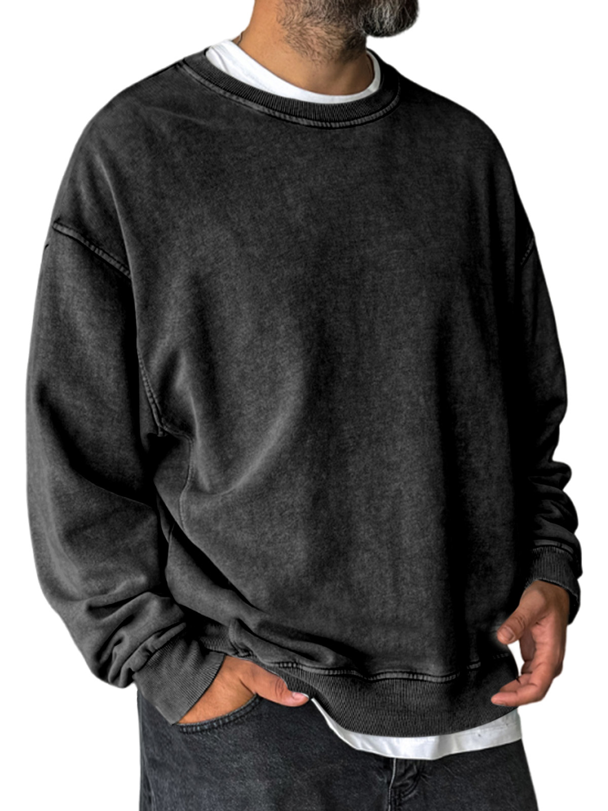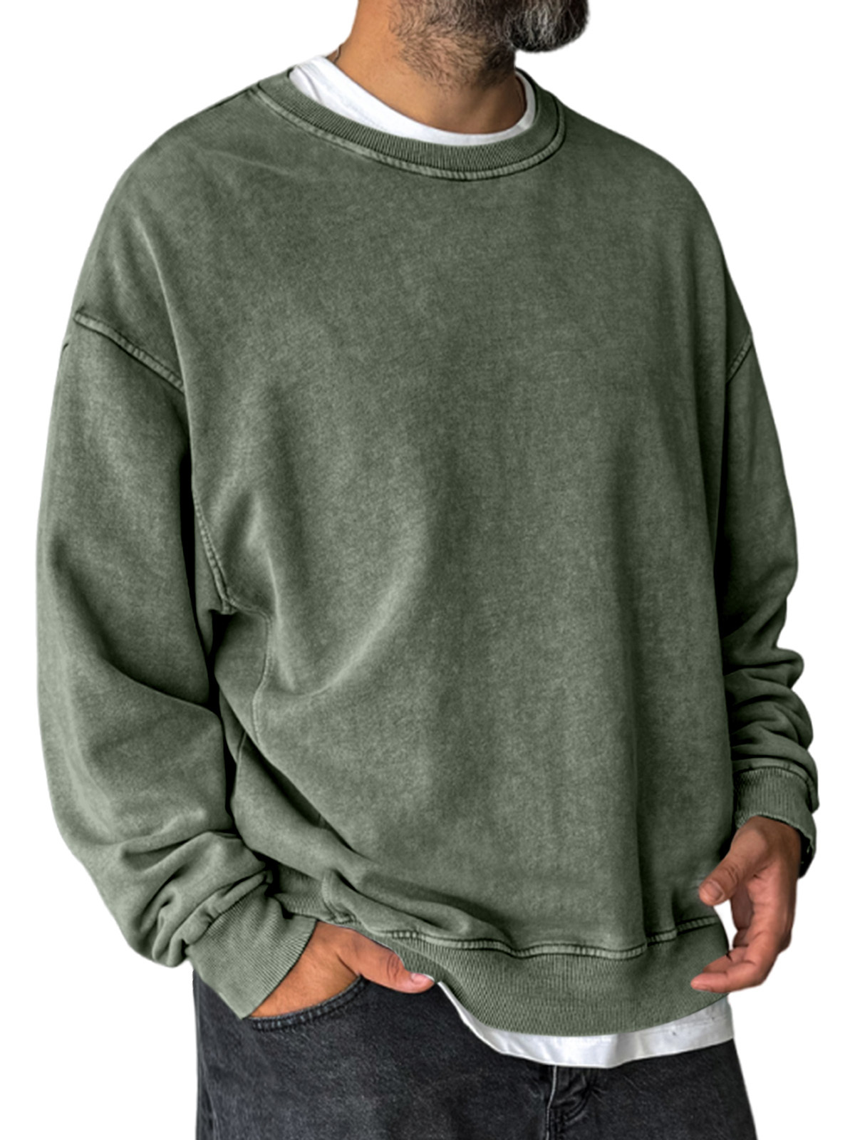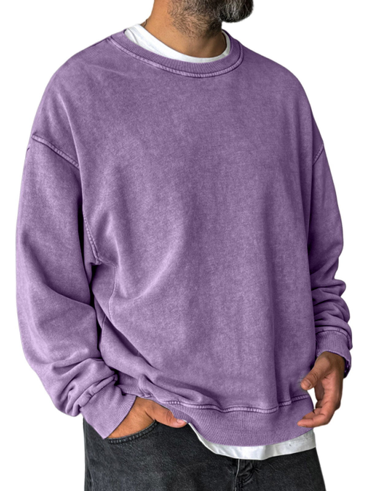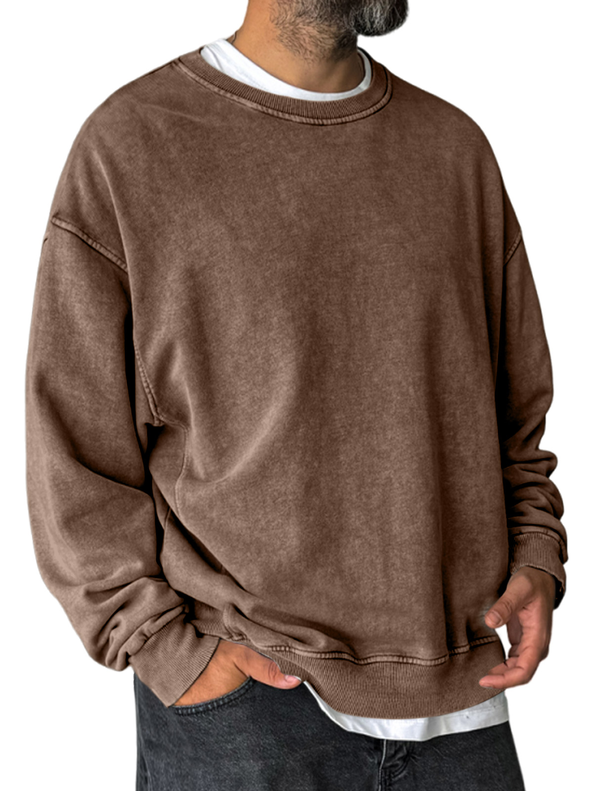 Men's Retro Casual Washed Cotton Round Neck Sweatshirt