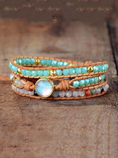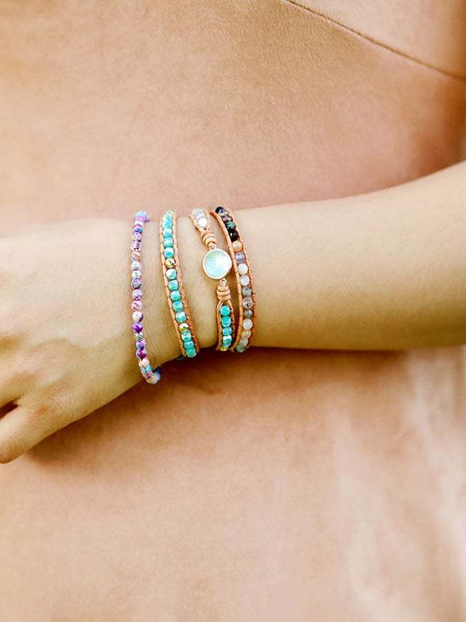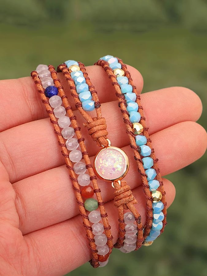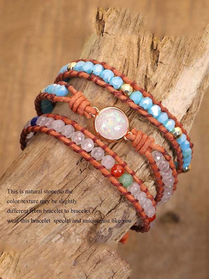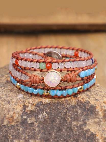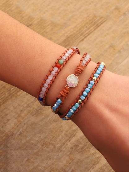 Multicolor Agate Beads Tiered Braided Bracelet