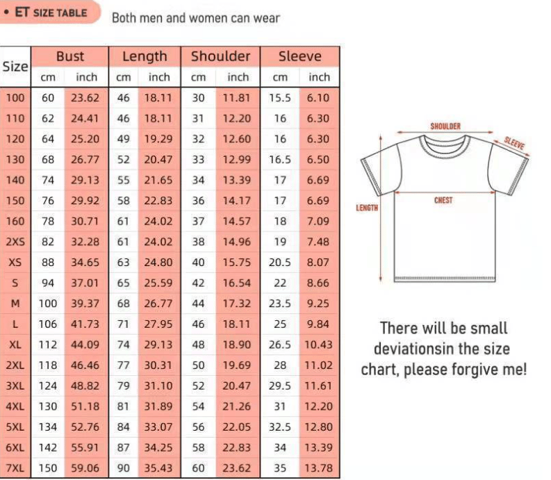 - Size:S/M/L/XL/XXL/XXXL/XXXXL/XXXXXL/XXXXXXL